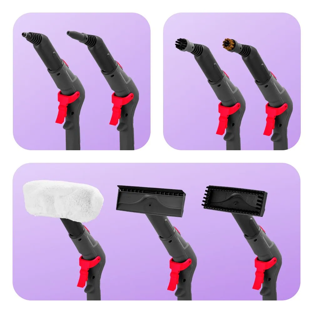 насадка-концентратор струйная насадка; нейлоновая щётка; латунная щётка; насадка с резиновым скребком; напольная насадка; тряпка для пола; рамка для ковра; прямоугольная насадка