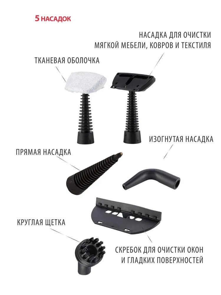 Насадки пароочистителя: Насадка для ковров, Насадка-скребок, Насадка-щетка