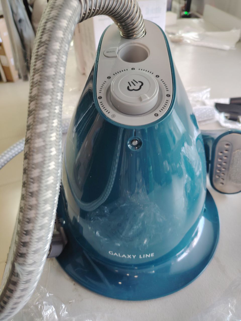 Отпариватель GALAXY LINE GL6215 - это современный многофункциональный прибор, сочетающий в себе функции глаженья, увлажнения, чистки и дезинфекции. Он предназначен для деликатного разглаживания складок на одежде или предметах интерьера, а также для отпаривания изделий из ткани. Отпариватель можно использовать для удаления пятен и запахов со всех типов тканей. С его помощью можно легко очистить от пыли и продезинфицировать детские игрушки, мягкую мебель, шторы и прочие предметы. Высокая мощность 1700 Вт и температура пара 100 °С обеспечивают мощные потоки пара, которые пробиваются в волокна ткани и выравнивают их. При этом ткань не растягивается и не деформируется. Горячий пар до 38 г/мин не только разглаживает, но и дезинфицирует ткань, очищает от загрязнений. Подача пара начинается примерно через 45 секунд после включения прибора. Отпариватель GALAXY LINE имеет регулятор интенсивности выхода пара для различных типов тканей (капрон, шелк, полиэстер, шерсть, плюш, хлопок, лен), что позволяет установить необходимый режим для отпаривания и обработки различных тканей и материалов. Прибор подходит как для деликатных тканей, так и для верхней одежды и меховых изделий. GALAXY LINE GL6215 поможет Вам восстановить структуру ткани - избавиться от пузырей на «коленках» и «локтях» одежды. Отпариватель имеет четырехсекционную телескопическую стойку длиной 120 см с возможностью регулировки по высоте. Контейнер для воды объемом 1,4 л обеспечивает до 40 минут работы прибора. Подошва утюжка выполнена из долговечной нержавеющей стали. Насадка-щетка позволяет создать стрелки и очистить ткань от пыли, сора и шерсти животных. Пар снимает статический заряд, а ворс эффективно устраняет загрязнения. Насадку-щетку можно также использовать для создания стрелок на брюках и рубашках, а также для очистки, отпаривания и дезинфекции меховых изделий, обивки мебели, мягких игрушек и пр. Удобная вешалка, держатели для брюк и подставка для утюжка обеспечивают комфортное отпаривание, а теплоизолированная рукавица и теплоизолированный шланг для подачи пара длиной 118 см - безопасное использование. Позвольте себе новые технологии для абсолютного комфорта с GALAXY LINE!