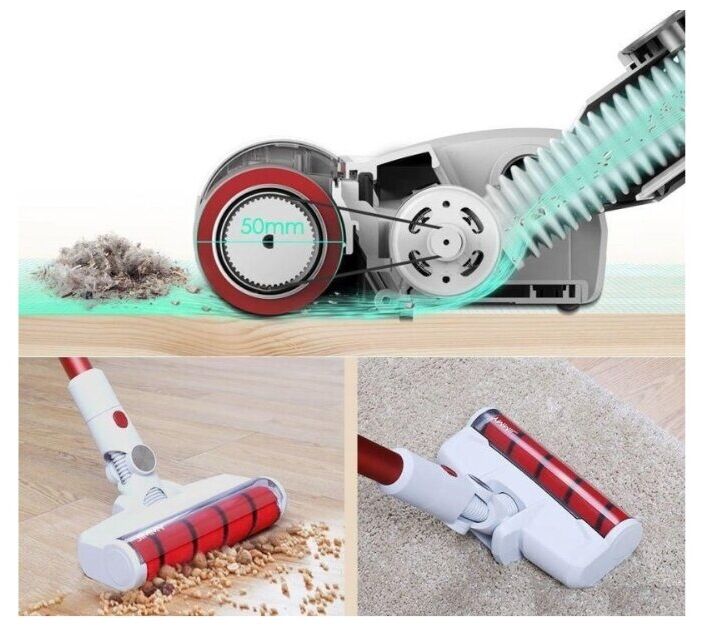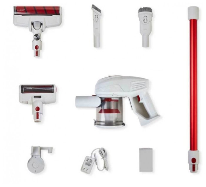 Пылесос изготовлен из металла и пластика. Для удобного перемещения в ручном пылесосе предусмотрены колёсики. Питание осуществляется от аккумуляторных батарей ёмкостью по 2.5 А•ч (всего их 6 штук). В режиме ожидания пылесос может находиться около 360 часов. Кроме того, он поддерживает функцию быстрой зарядки. Вас удивит, насколько тихо работает пылесос Jimmy. Показатель уровня шума составляет около 78 дБ.
