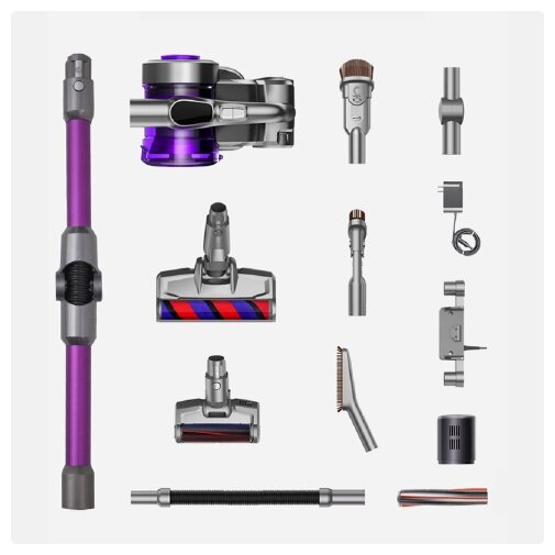 Двигатель вертикального пылесоса Jimmy JV85 Pro создает сильный поток воздуха, под воздействием которого всасываемые частицы пыли отделяются от воздуха. Номинальная мощность пылесоса составляет 500 Вт, а эффективная мощность всасывания достигает 200 AW. Яркий дисплей отображает информацию о заряде аккумулятора и о текущем режиме работы. Запатентованный горизонтальный циклон снижает потери на всасывании. Конструкция спроектирована так, что были уменьшены изгибы воздушного пути пылесборника, благодаря чему улучшилась скорость потока воздуха. Большой прозрачный пылесборник емкостью 0,6 л легко вынимается одним нажатием кнопки и также легко промывается. В комплекте доступны две турбощетки для пола. Комбинированная щетка состоит из мягких и жестких волокон и отлично подойдет для ковровых покрытий. Мягкая турбощетка подходит для очистки твердых покрытий и полировки.