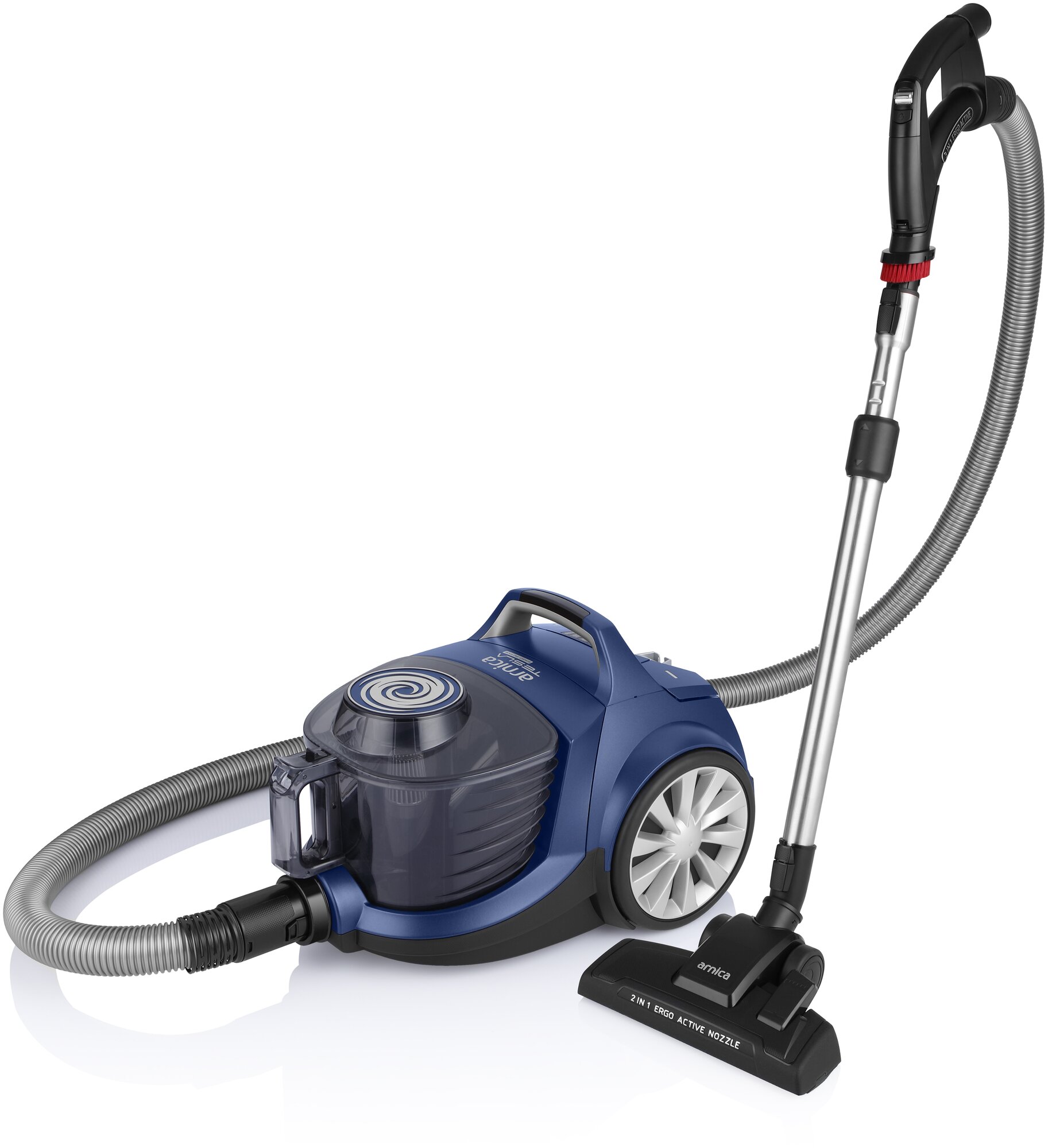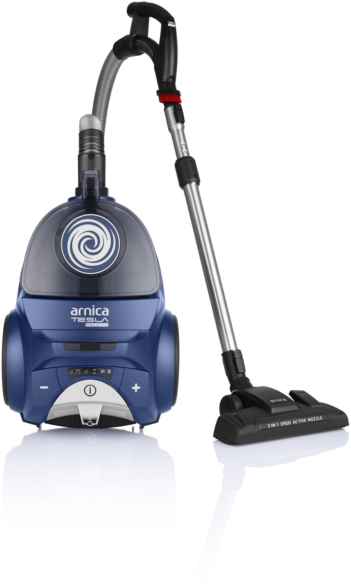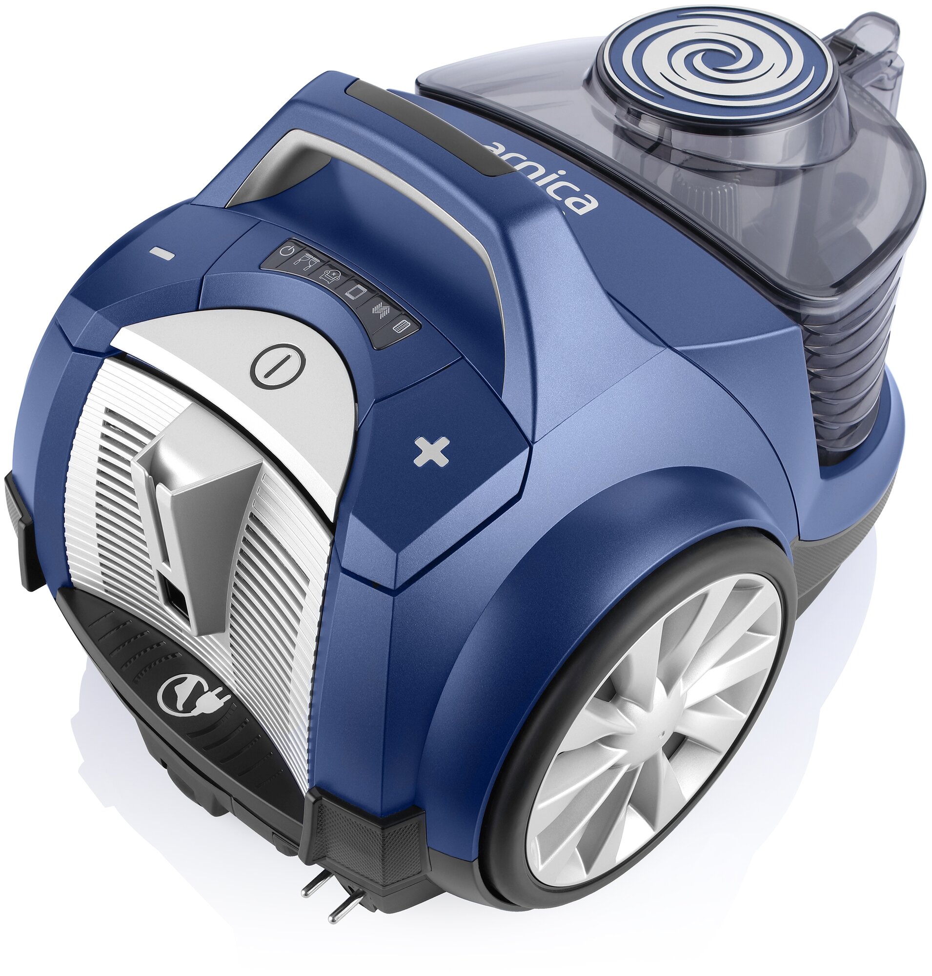 Особенности: Вертикальная парковка, Автоматическая смотка шнура, Регулировка мощности, Светодиодный дисплей, Индикатор заполнения пылесборника, Управление на рукоятке