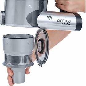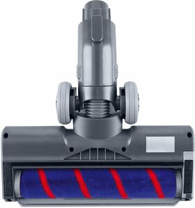 Регулятор мощности на корпусе, место для хранения насадок, индикатор заполнения пылесборника, вертикальная парковка, управление мощностью на рукоятке