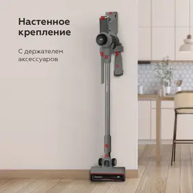 Пылесос снабжён настенным креплением, благодаря чему его легко хранить, не занимая много места. Насадка Action Turbo Brush обеспечивает качественную уборку как на коврах, так и на твердых покрытиях.