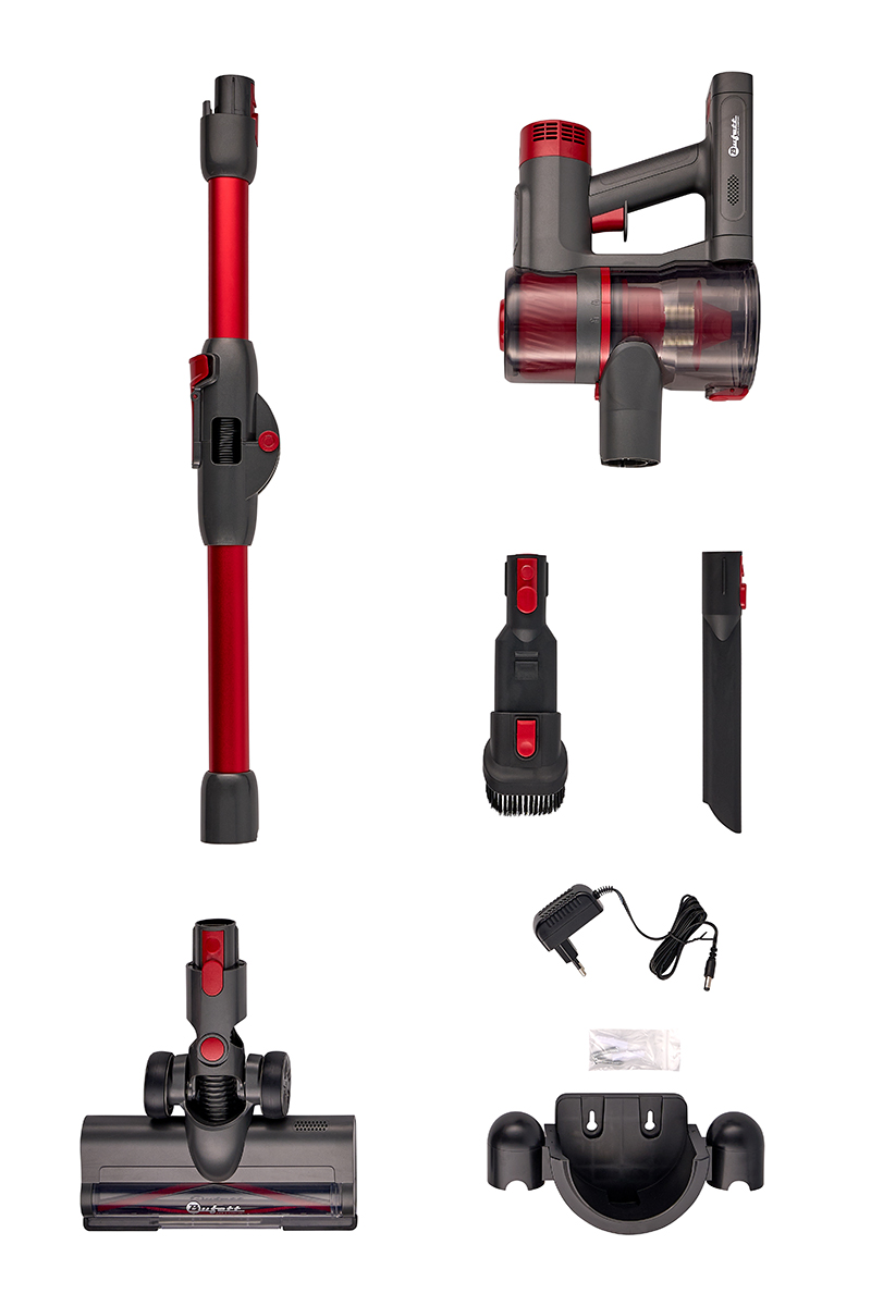 Пылесос вертикальный, складная трубка местах, сменный моющийся НЕРА, щетка-насадка для пола, чистящая щетка для мебели, щелевая насадка для труднодоступных мест, большой пылесборник со съемным удобным отсеком, настенный крепеж для вертикального хранения устройства насадок