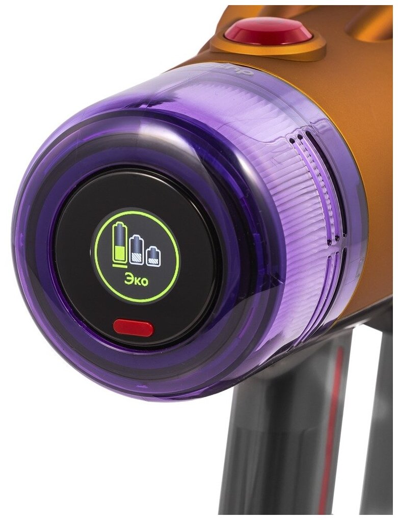 режимы мощности всасывания, аВт (макс./номин.): турбо - 150, средний - 23, эко - 12; ЖК-дисплей; съемный аккумулятор; время работы без электрощеток в мин. макс./номин. режимы: турбо - 5, средний - 30, эко - 60; время работы с электрощетками, мин.: турбо - до 5, средний - до 30, эко - до 50; рабочее напряжение аккумулятора, В: 29.40