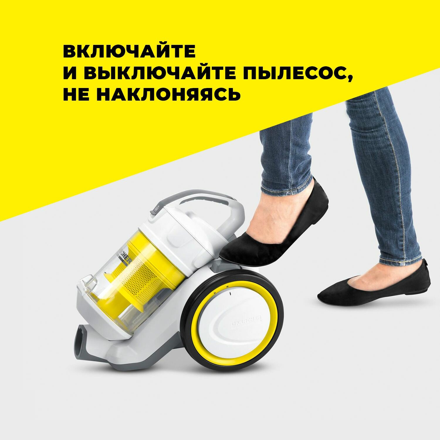 вертикальная парковка, ножной переключатель вкл./выкл., Автоматическая смотка шнура, Большие колеса, Горизонтальная парковка