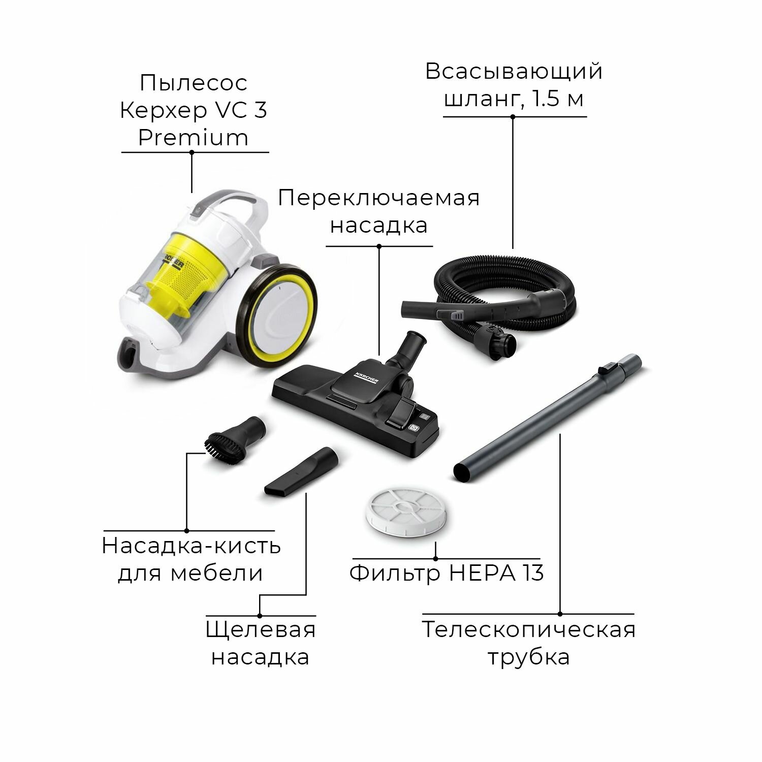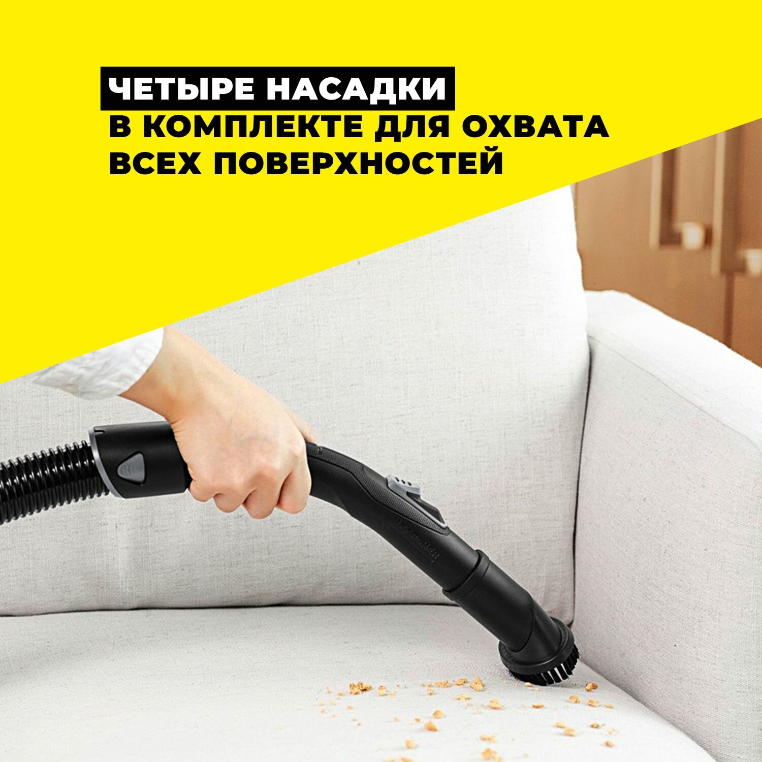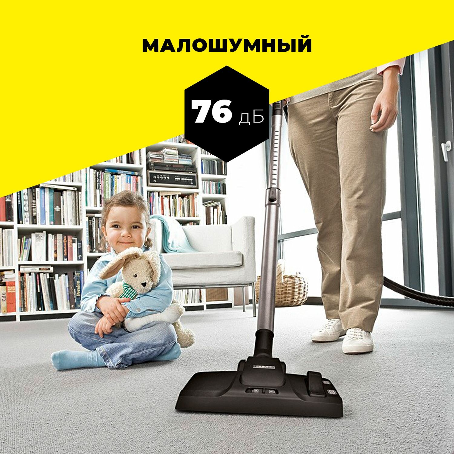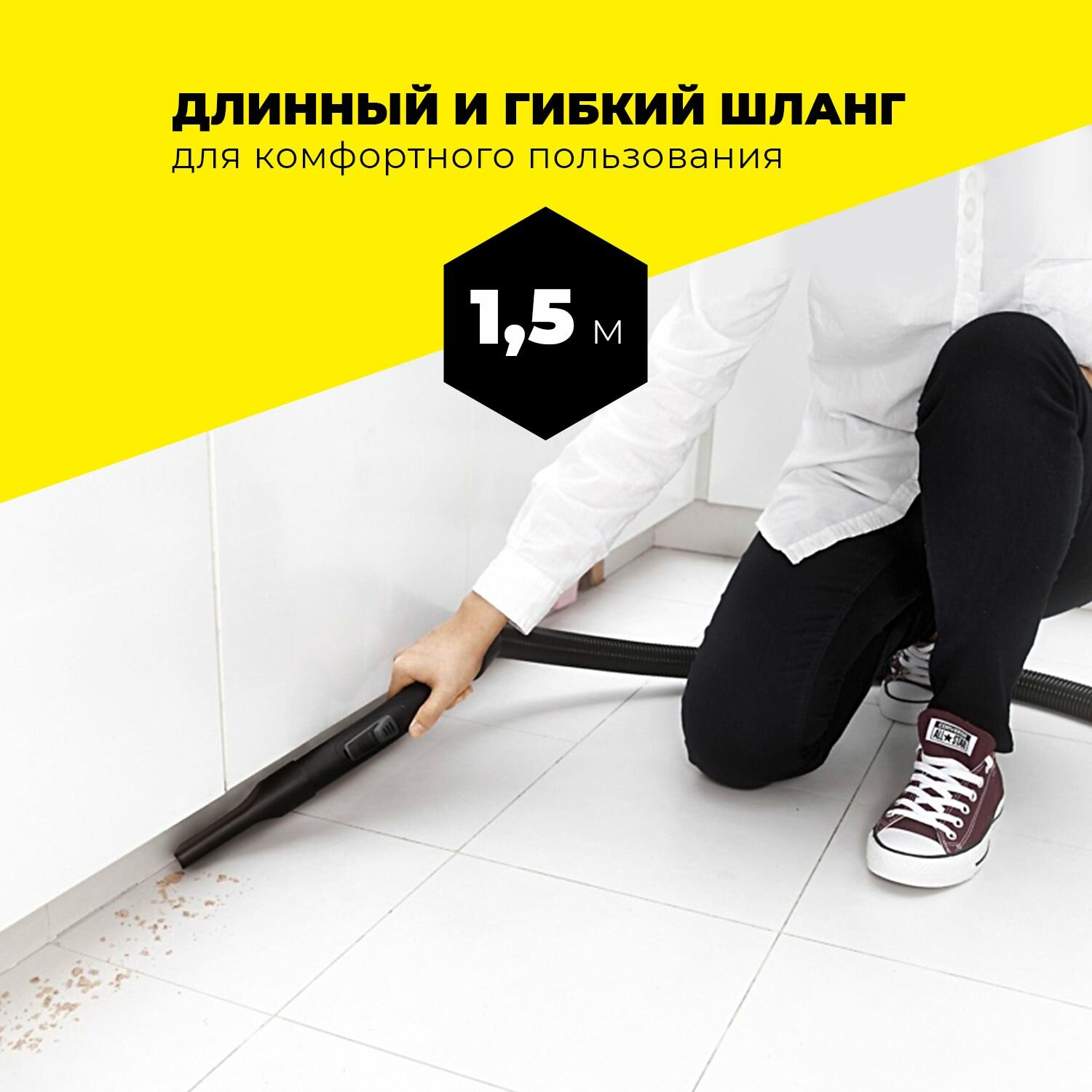 всасывающий шланг 1.5 м; крепление насадок на удлинительной трубке; фильтр HEPA 12; радиус действия: 7.5 м