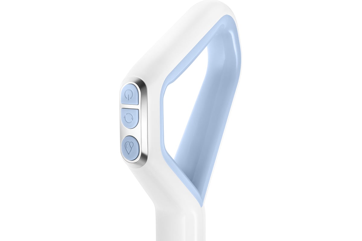 Удлинительная ручка съемная, поэтому прибор можно разобрать для компактного хранения. Для хранения предусмотрена база, на которой устройство заряжается. На базе есть отсеки для просушки валика турбощетки и хранения ершика.