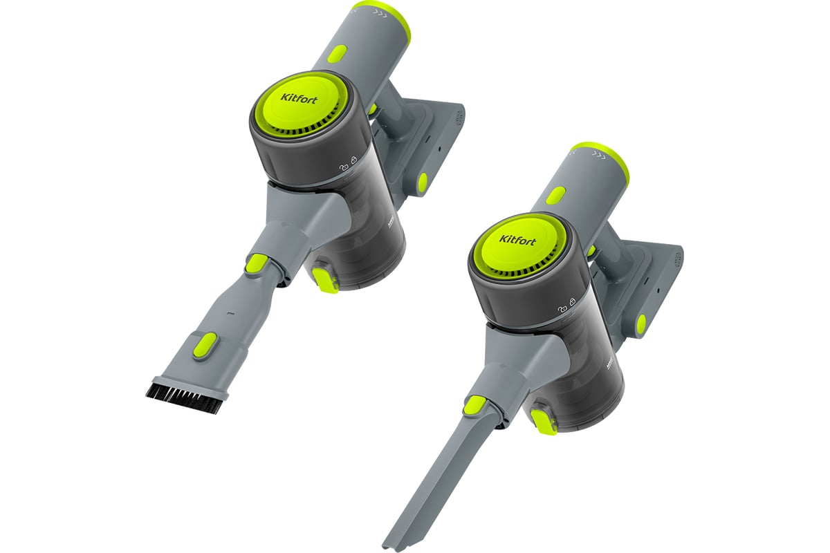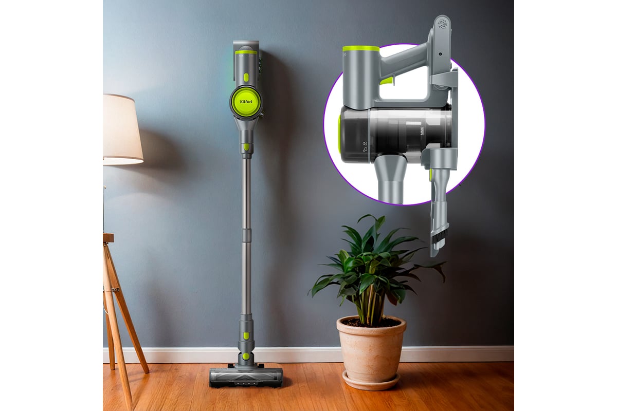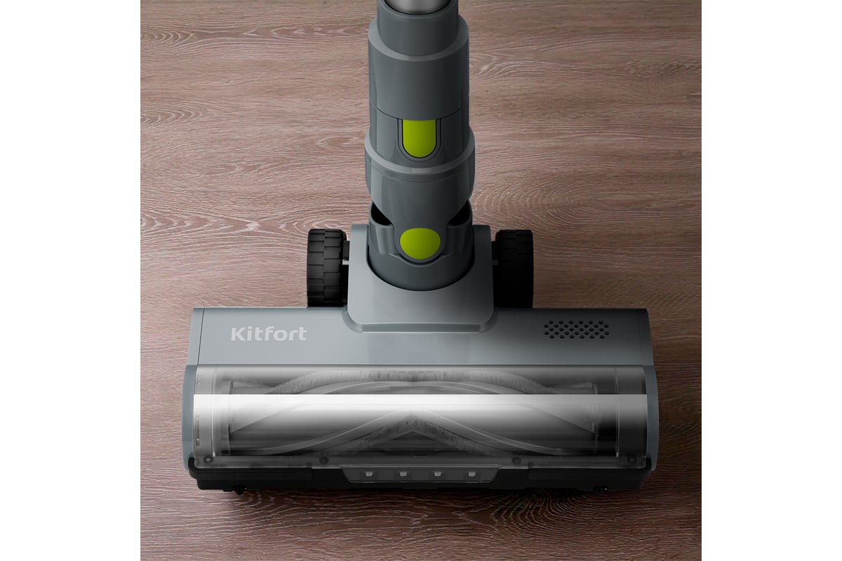Беспроводной вертикальный пылесос КТ-5306 очень удобен при локальной уборке. Он компактен, всегда под рукой и готов к работе. При отсоединении удлинительной трубки и установке насадки он превращается в ручной пылесос. Его конструкция позволяет легко проникать в самые труднодоступные уголки квартиры. При этом не нужно передвигать громоздкий корпус проводного пылесоса и управляться с непослушным шлангом. Благодаря работе от аккумулятора не нужно включать вилку в розетку, провода не мешают под ногами. Поэтому пылесос имеет неограниченный радиус действия: от любого уголка квартиры до машины или беседки в саду. Пылесос оснащен маневренной напольной турбощеткой, которая вращается в двух плоскостях.