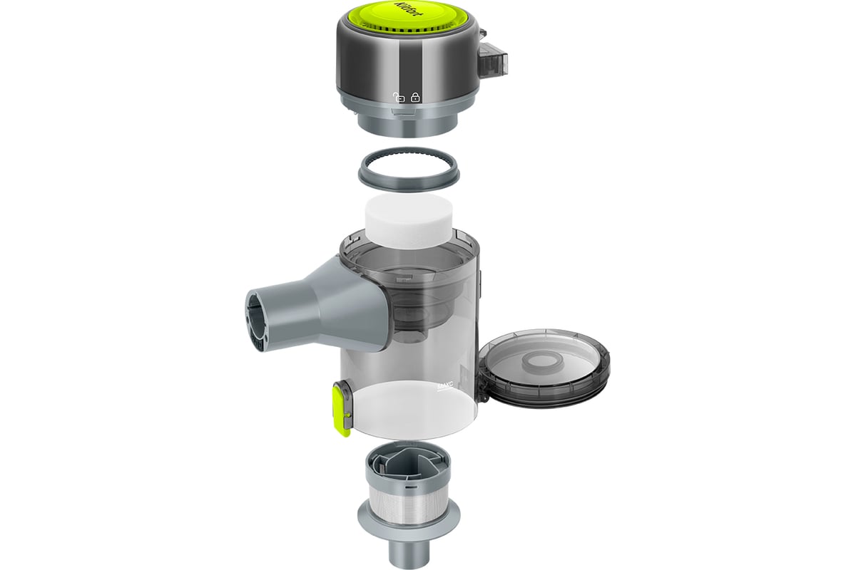 Конструкция «2 в 1» предусматривает наличие ручного пылесоса, который удобно использовать отдельно.