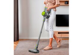 Пылесос комплектуется напольной насадкой с турбощеткой, которая помогает качественно справиться с очисткой гладких поверхностей и ковровых покрытий с не очень длинным ворсом. Светодиодная подсветка напольной щетки сделает уборку комфортной даже в затемненных местах. Также к пылесосу прилагаются насадка «2 в 1», щелевая насадка и кронштейн для настенного хранения устройства, у которого предусмотрено место для хранения насадок.