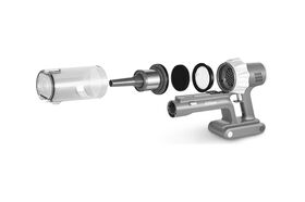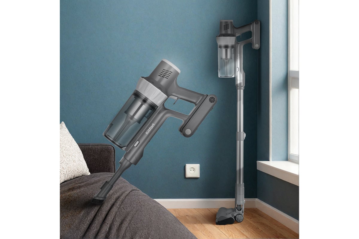 Беспроводной вертикальный пылесос КТ-5341 очень удобен при локальной уборке. Он компактен, всегда под рукой и готов к работе. При отсоединении удлинительной трубки и установке насадки он превращается в ручной пылесос. Его конструкция позволяет легко проникать в самые труднодоступные уголки квартиры. При этом не нужно передвигать громоздкий корпус проводного пылесоса и управляться с непослушным шлангом. Благодаря работе от аккумулятора не нужно включать вилку в розетку, провода не мешают под ногами. Поэтому пылесос имеет неограниченный радиус действия: от любого уголка квартиры до машины или беседки в саду. Пылесос оснащен маневренной напольной турбощеткой, которая вращается в двух плоскостях.