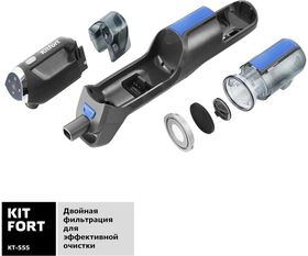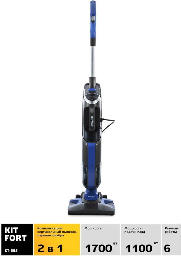 Описание Вертикальный пылесос Kitfort KT-555 с функциями паровой швабры и ручного пароочистителя удобен при локальной и генеральной уборке. Он всасывает пыль и мелкий мусор, а затем очищает поверхность от грязи, въевшихся пятен и жира при помощи горячего пара.