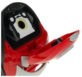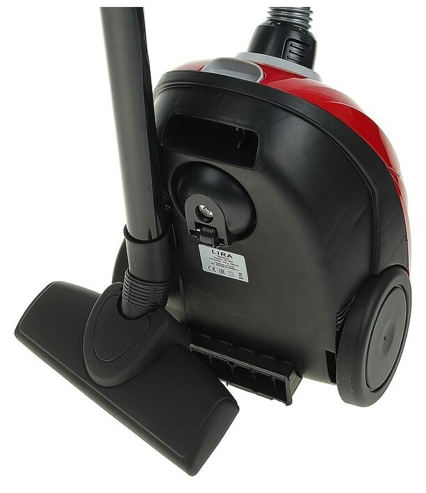индикатор заполнения пылесборника, место для хранения насадок, ножной переключатель вкл./выкл., регулятор мощности на корпусе