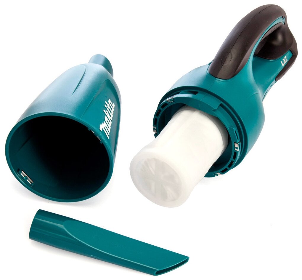 Аккумуляторный пылесос Makita DCL180Z поставляется с широким набором комплектующих, которые расширяют сферу его применения. Обрезиненная рукоять не выскальзывает из рук при работе. Тканевый фильтр и капроновый предфильтр тщательно очищают выходящий воздух. Ролики и шарниры обеспечивают высокий уровень маневренности насадки для уборки пола. Аккумуляторная модель не нуждается в подключении к электросети и может использоваться при отсутствии электроснабжения - для уборки машины, дачного домика.