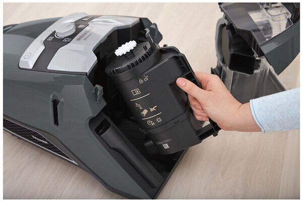 ножной переключатель вкл./выкл., место для хранения насадок, вертикальная парковка, индикатор заполнения пылесборника, регулятор мощности на корпусе