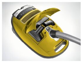 вертикальная парковка, мягкий бампер, индикатор заполнения пылесборника, регулятор мощности на корпусе
