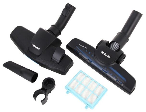 место для хранения насадок, вертикальная парковка, индикатор заполнения пылесборника, управление мощностью на рукоятке
