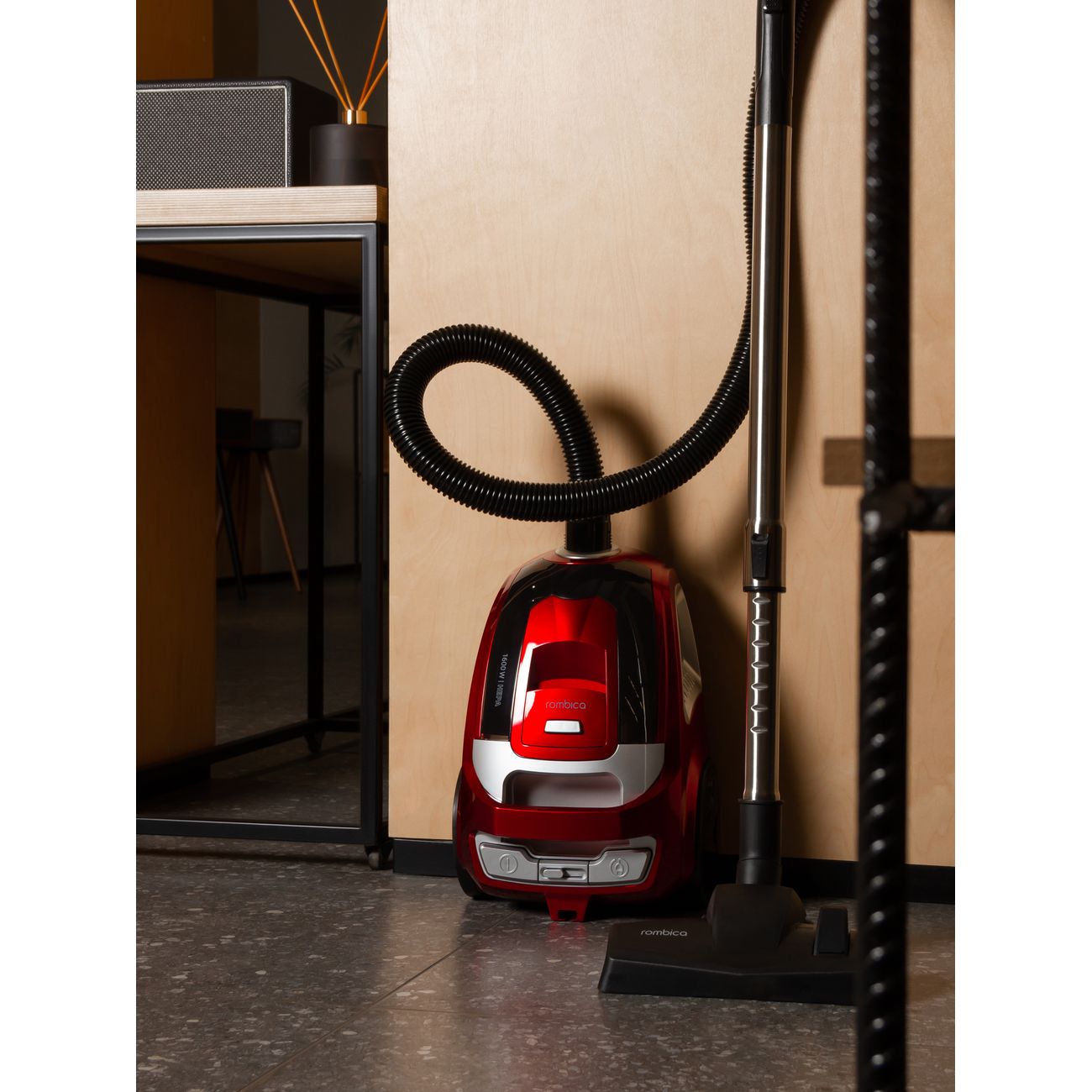 Потребляемая мощность составляет 1600 Вт. На конец телескопической трубки, выполненной из алюминия, крепятся насадки: корпусная, пол/ковер, щелевая. Прорезиненные колеса и ручка упрощают процесс транспортировки. Парковка может производиться в вертикальном и горизонтальном положении. Провод длиной 5 м сматывается автоматически. В случае перегрева пылесос автоматически отключается. Габаритные размеры модели — 25,5х40х27,5 см, вес — 5,67 кг.