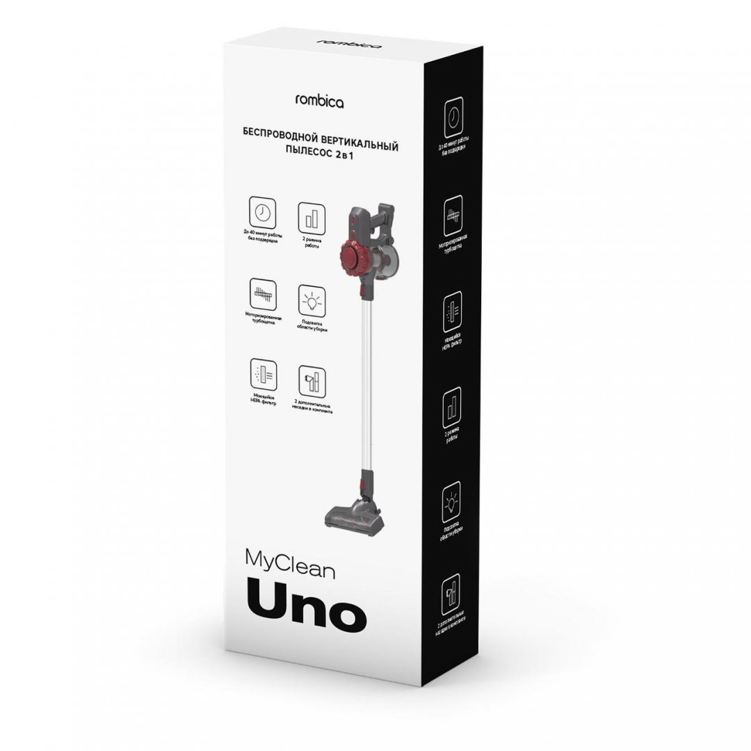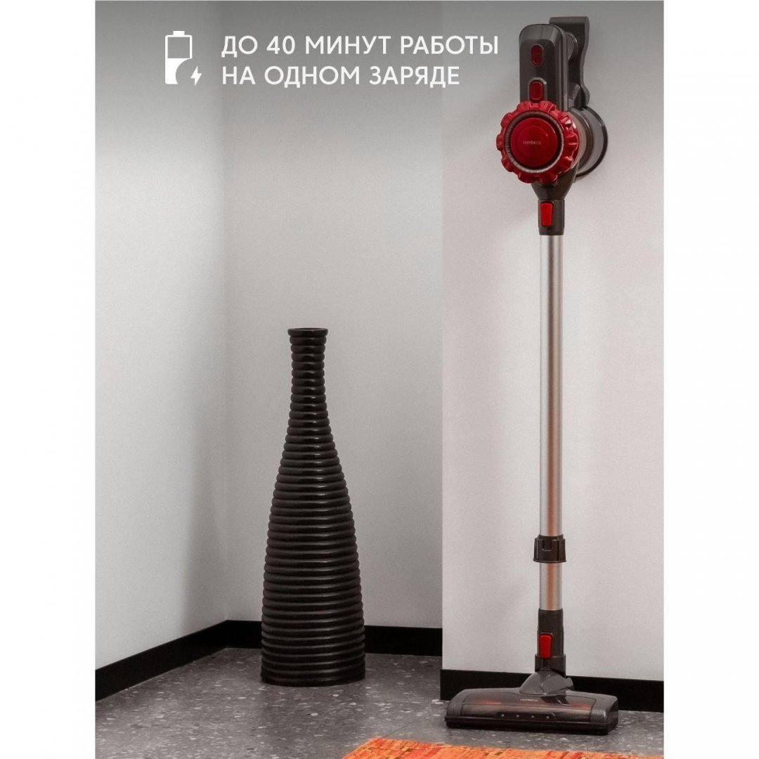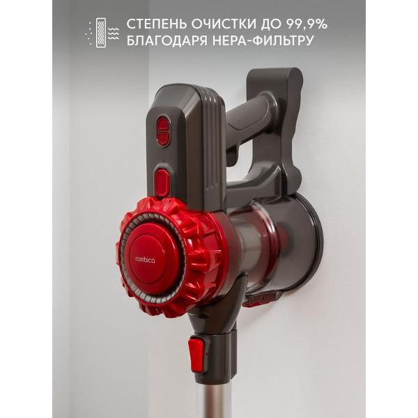 Вертикальный пылесос Rombica MyClean Uno Red (NHS16D01) имеет удобную механическую систему управления. Объем контейнера для сбора пыли составляет 0,8 л. Время автономной работы от Li-Ion-аккумулятора с емкостью 2200 мА*ч достигает 40 минут. Световой индикатор сообщает об уровне заряда батареи.