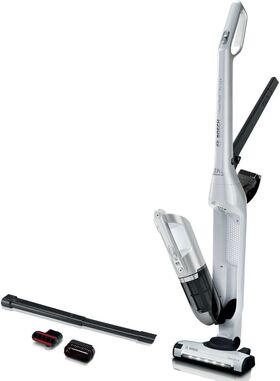 2 в 1: Съемный портативный пылесос и стандартный беспроводной; ионная технология от Bosch обеспечивает сверх продолжительное время работы для стабильно безупречного результата и быструю зарядку аккумулятора; турбощетка PowerBrush с LED подсветкой подходит для уборки любых напольных покрытий; два уровня регулировки мощности
