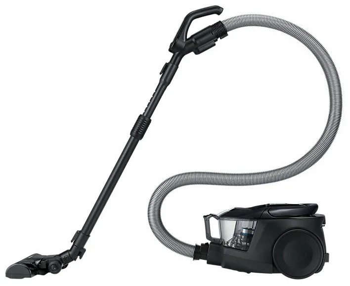 Особенности конструкции: индикатор заполнения пылесборника, место для хранения насадок, ножной переключатель вкл./выкл., регулятор мощности на корпусе