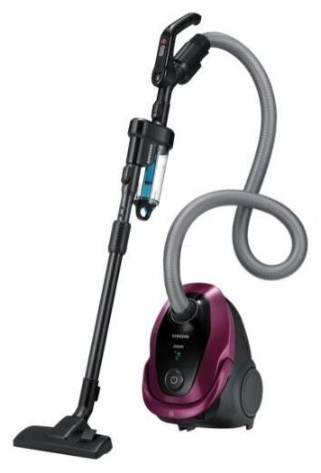 ножной переключатель вкл./выкл., место для хранения насадок, вертикальная парковка, индикатор заполнения пылесборника, регулятор мощности на корпусе