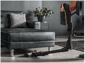 Индикация работы; Крепление насадок на трубе; Индикатор уровня зарядки; Отключение при перегреве; Плавный запуск двигателя; Крепление на стену; Индикация режима работы; Автоматическая регулировка мощности; Индикация разрядки аккумулятора; Микрофильтр; Циклонный фильтр; Моторный фильтр; Турбо режим; Сухая уборка; Комплектация: Зарядное устройство, Электрощетка, Док-станция, Сменный фильтр HEPA