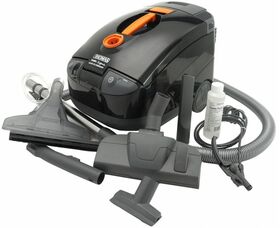 радиус действия 10м; съёмный резервуар для моющего раствора 2.4 л, объём аквафильтра 1 л, бак для грязной воды 4 л; увлажнение воздуха во время уборки