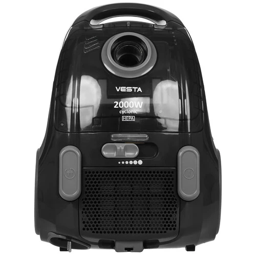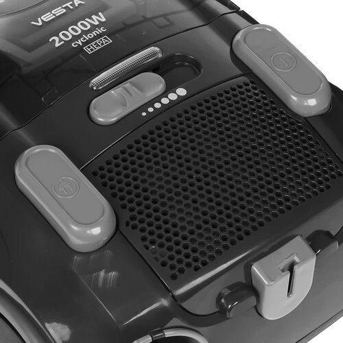 Пылесос Vesta V3U2000 собирает мусор в контейнер объемом 2.5 л. Телескопическая трубка состоит из двух отрезков трубы разного диаметра и может отсоединяться. Фильтр тонкой очистки задерживает 99% частиц пыли.