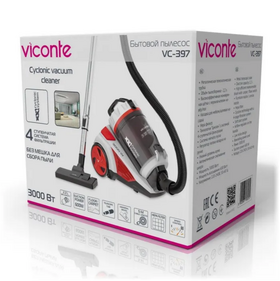 Пылесос Viconte VC-397 мощность 3000 W , Бытовой пылесос, мощность 3000 Вт, мощность всасывания - 600 Вт, эффективная система очистки воздуха «Циклон» с 4-х ступенчатой системой фильтрации воздуха, объем пылесборника 2,2 л, лёгкая очистка контейнера, НЕРА фильтр - обеспечивает очистку воздуха до 99.9%, металлическая телескопическая трубка, регулятор скорости на корпусе, регулятор потока воздуха на ручке, длина шнура питания 5 м, автоматическая смотка шнура. В комплекте: щётка с переключателем ковёр/пол, насадка "мебель/щель".