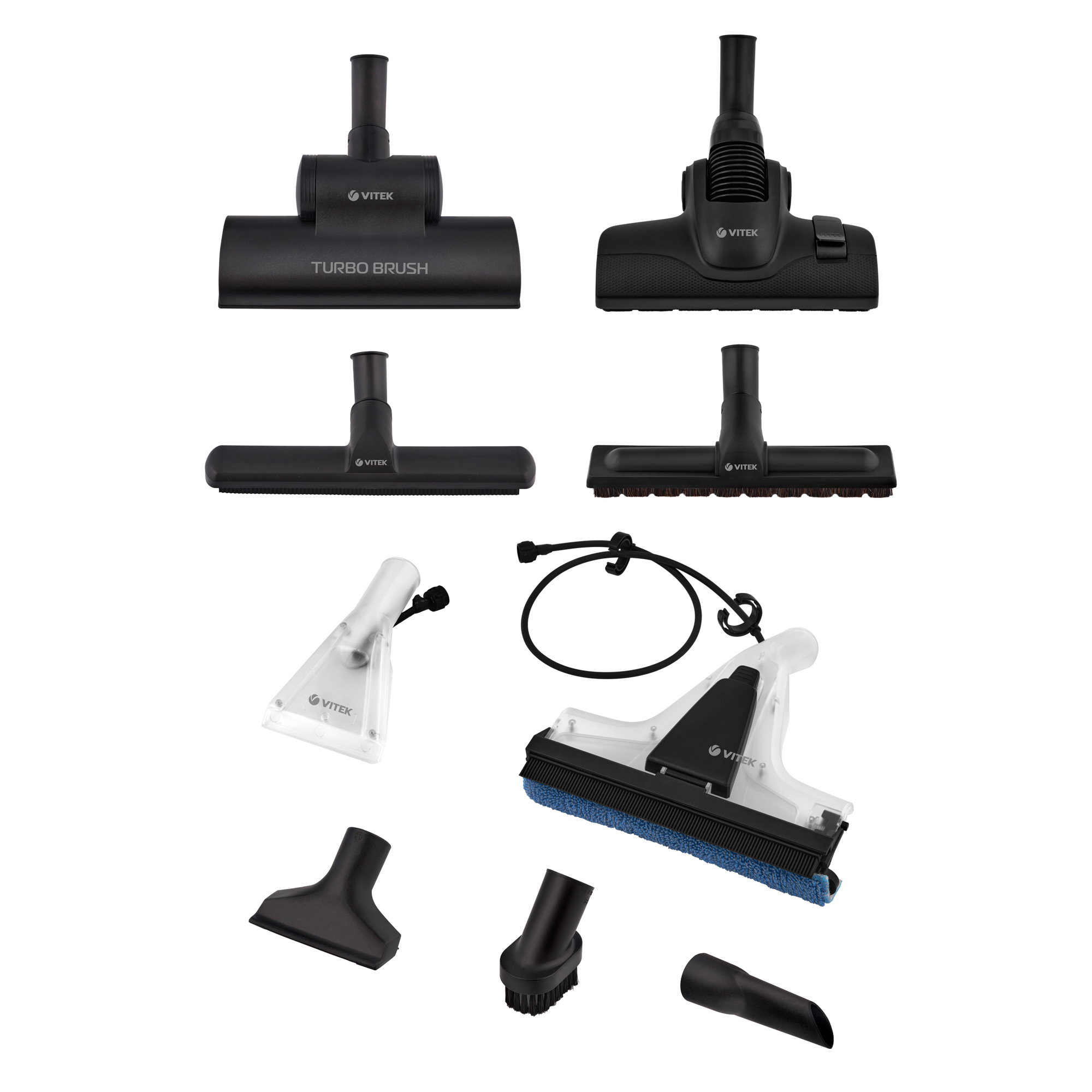 насадка для мойки окон, насадка для мягкой мебели, насадка для сбора жидкости, насадка для твердых покрытий мебели, турбощетка, щелевая насадка, гарантийный талон, гибкий шланг с рукояткой и трубкой для подачи жидкости, инструкция, металлическая телескопическая труба, насадка для влажной уборки мебели с короткой трубкой подачи жидкости, насадка для влажной уборки мягкой мебели с короткой трубкой подачи жидкости, насадка для влажной уборки пола с длинной трубкой для подачи жидкости, насадка для влажной уборки твёрдых полов и окон, насадка – швабра со сменной тряпочкой из микрофибры, резиновый сгон для воды, сепаратор (закрытый) для очистки с водной фильтрацией, сепаратор (открытый) для влажной уборки, щетка для пыли