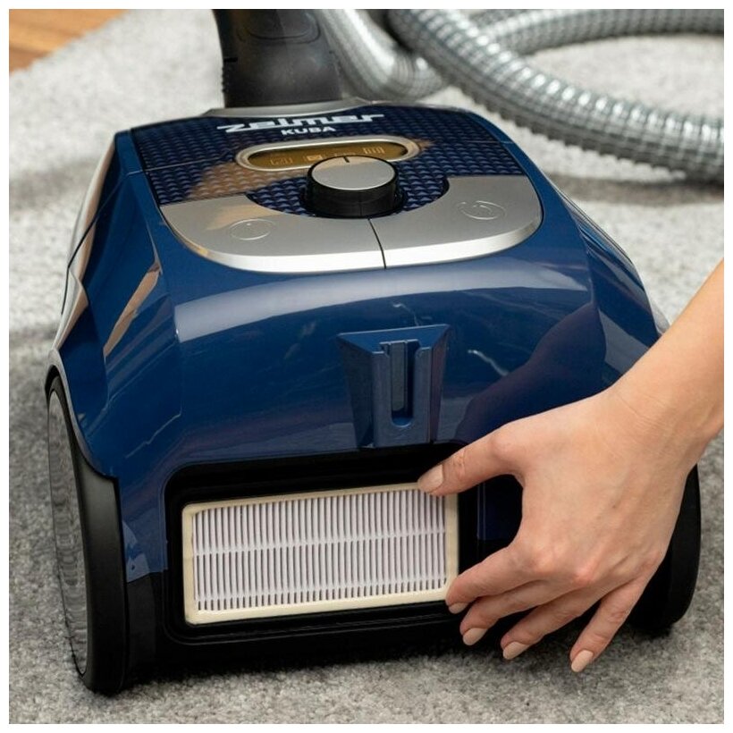 Пылесос Zelmer Kuba ZVC333 приятного синего цвета для сухой уборки помещений прост в использовании. Пыль собирается в специальный мешок, вмещающий в себя до 3-х литров. С помощью универсальной щётки можно выполнять сухую уборку помещения, включая поверхности ковров и пола. Установите оптимальный для поверхности уровень мощности с помощью ползункового регулятора расположенного на корпусе.