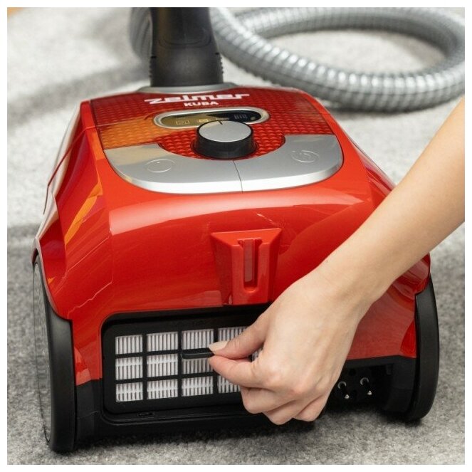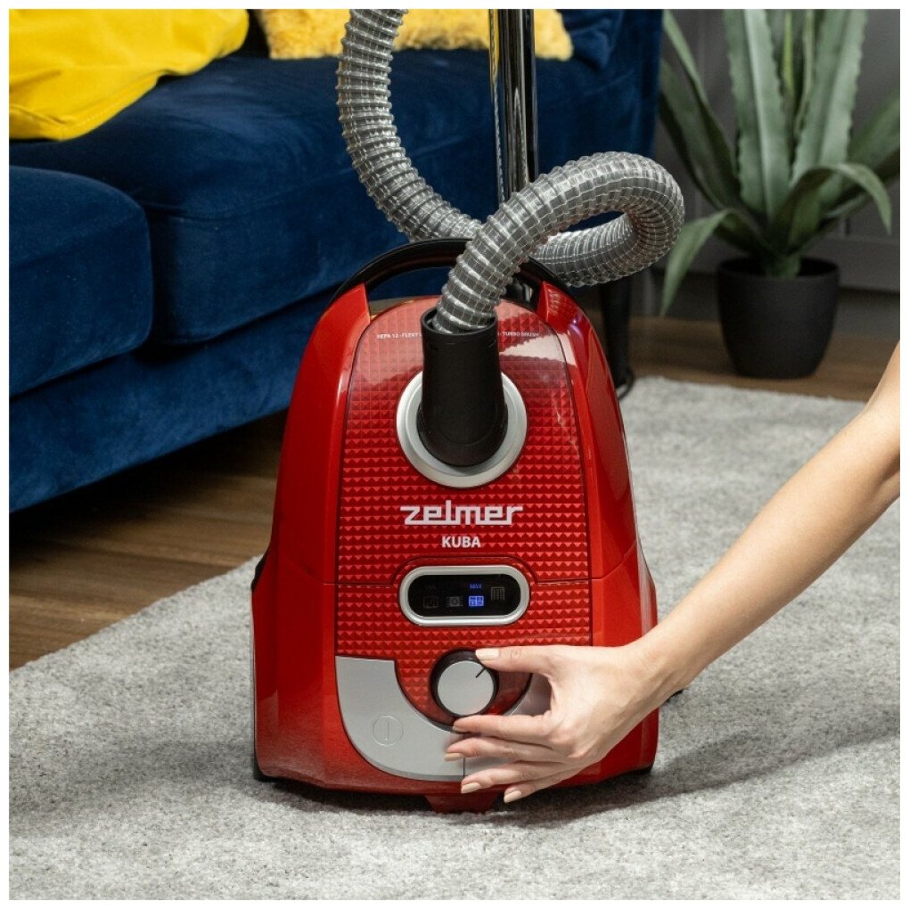 Пылесос Zelmer Kuba ZVC335 приятного красного цвета для сухой уборки помещений прост в использовании. Пыль собирается в специальный мешок, вмещающий в себя до 3-х литров. С помощью универсальной щётки можно выполнять сухую уборку помещения, включая поверхности ковров и пола. Установите оптимальный для поверхности уровень мощности с помощью ползункового регулятора расположенного на корпусе.