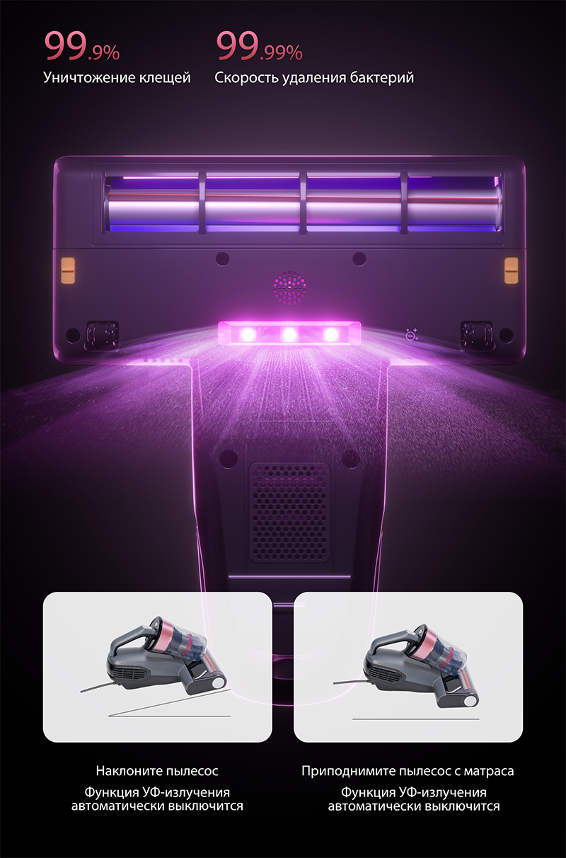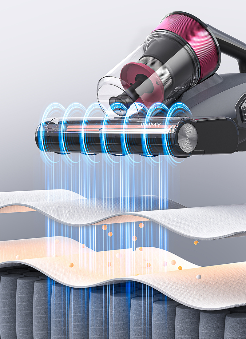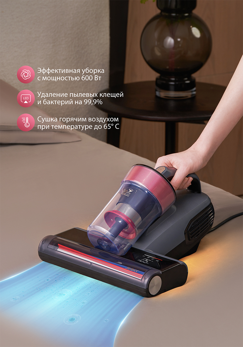 В отличие от обычных ручных пылесосов, пылесос JIMMY BX8 оснащен передовой технологией УФ-излучения с длиной волны 265-280 нм, которая эффективно устраняет широкий спектр аллергенов и невидимых вредных загрязнений с кроватей, матрасов, подушек и тканевых поверхностей. Защитите здоровье своей семьи, обеспечив чистоту дома.
