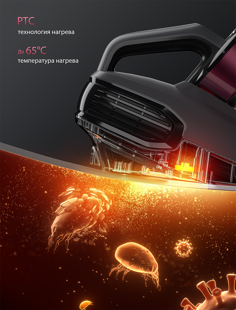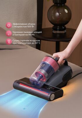 Уничтожает до 99,9% пылевых клещей и бактерий.