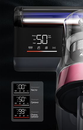 Светодиодный экран отображает режимы, функции, индекс загрязненности и ход уборки в режиме реального времени, обеспечивая вам полный контроль над процессом уборки без каких-либо усилий.