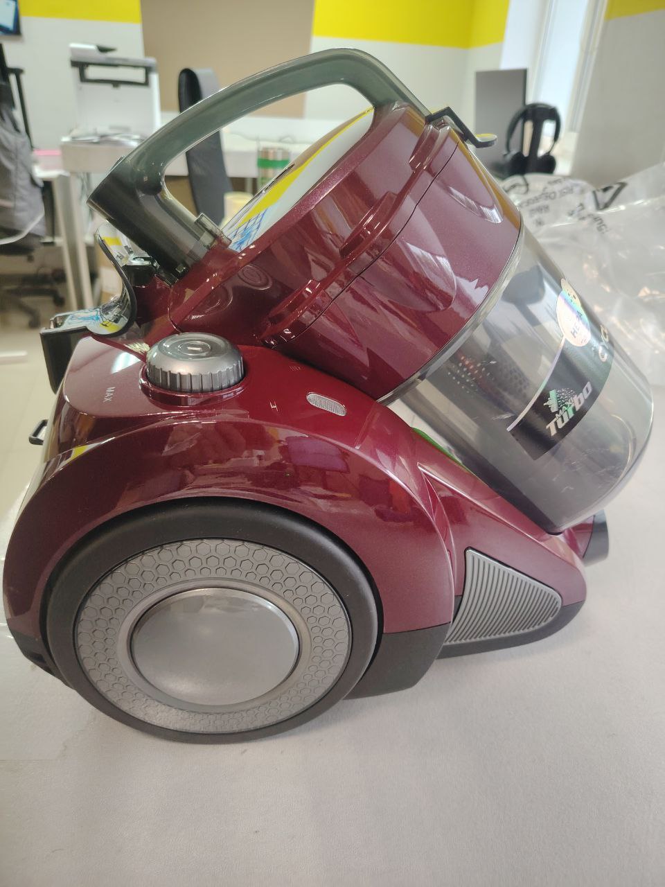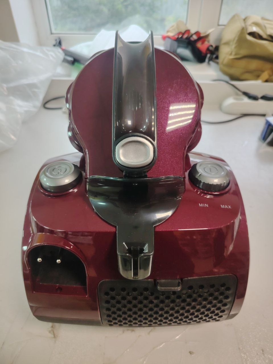 автоматическая смотка шнура, индикатор заполнения пылесборника, регулировка мощности всасывания, фильтр для защиты мотора, телескопическая трубка