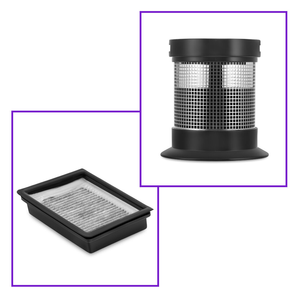 зарядное устройство, турбощетка, удлинительная трубка/шланг, фильтр тонкой очистки, щеточка для очистки