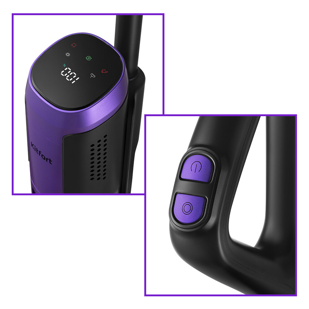 вертикальная парковка, индикатор заполнения пылесборника, управление мощностью на рукоятке