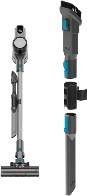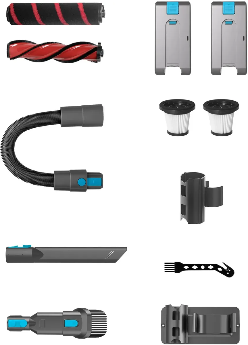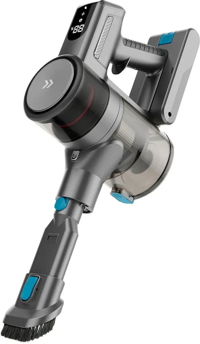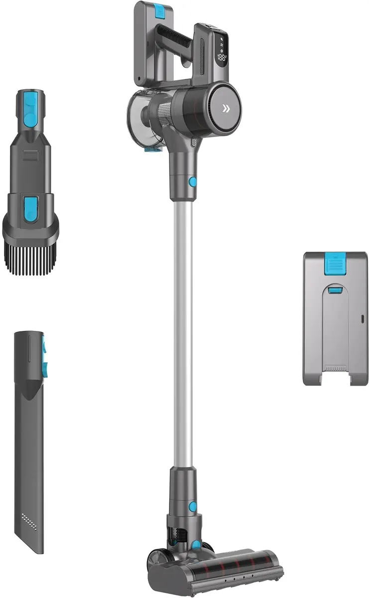 LED-дисплей, легко очищаемый пылесборник, место для хранения насадок, настенное крепление, подсветка зоны уборки