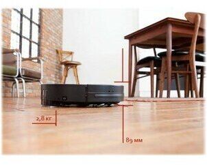 Эффективен на любых гладких поверхностях, подходит для больших помещений до 150 кв. м. (до 300 кв. м. после автоматической подзарядки), один из самых бесшумных роботов на рынке.