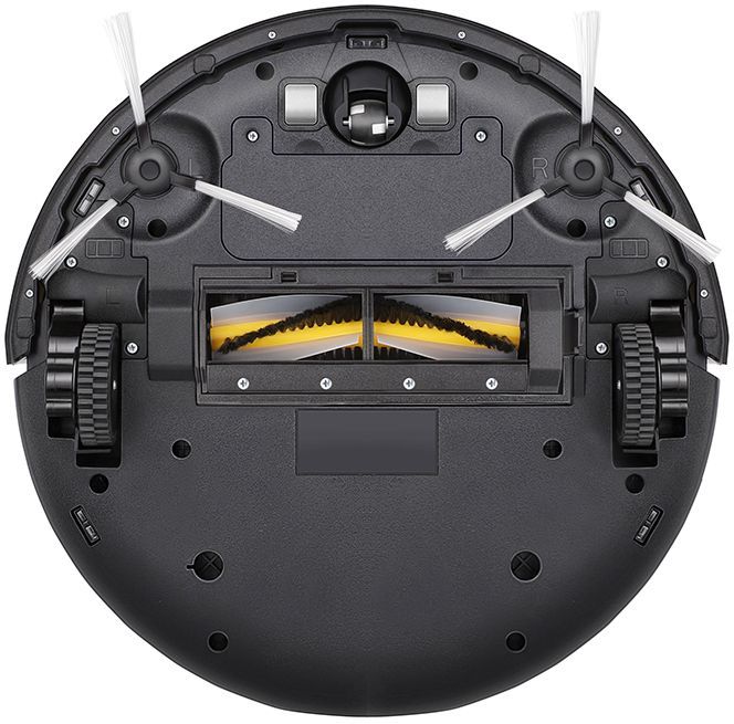 Особенностью данной модели является вращающаяся электрическая щетка, которая вместе с двумя боковыми щетками и всасывающим отверстием позволяет эффективно убирать мусор. Специальные датчики не позволят пылесосу упасть во время уборки со ступенек.