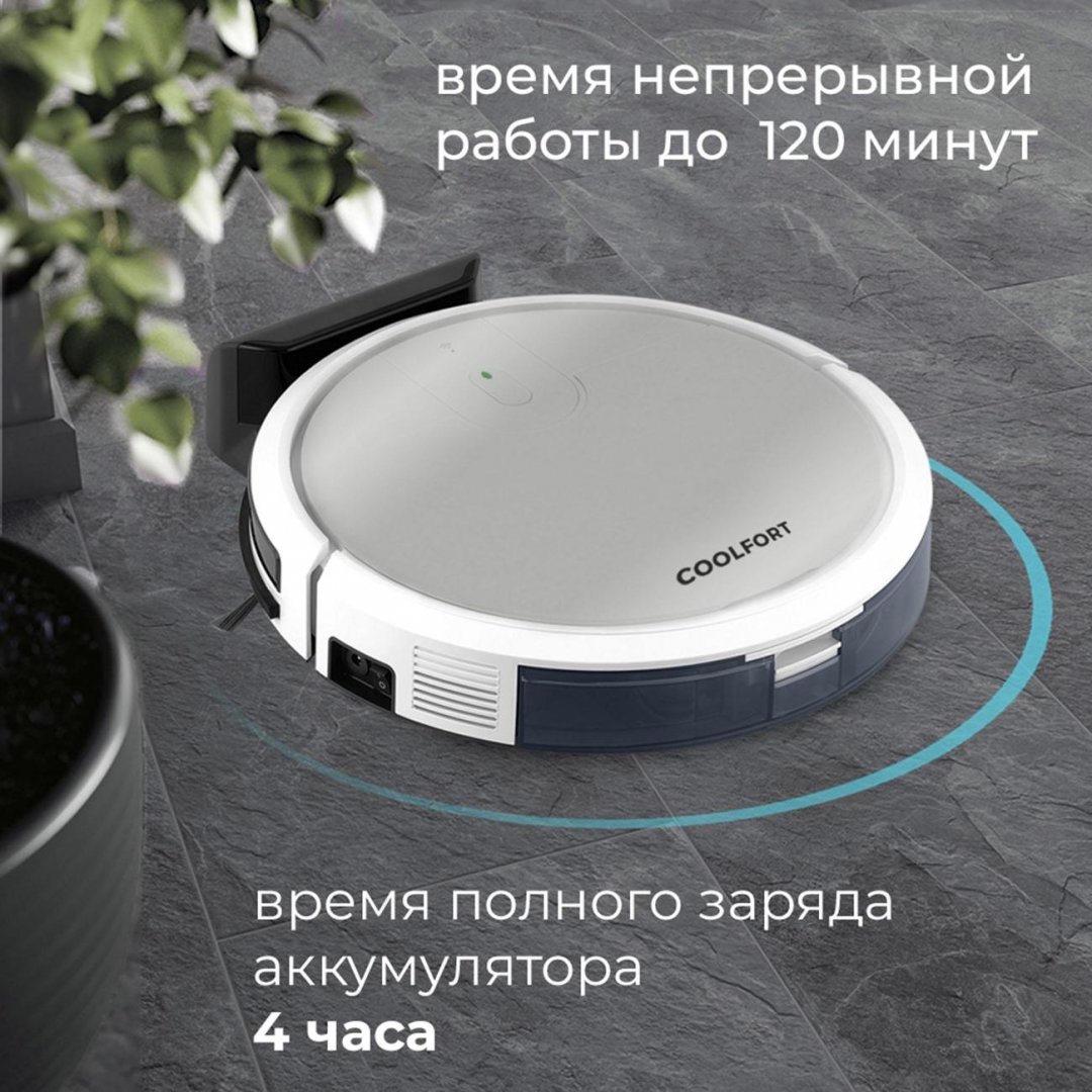 Робот-пылесос Coolfort CF-3204 оптимален для бытового применения, может выполнять сухую и влажную уборку. Для сбора загрязнений предусмотрен пылесборник объемом 0,6 л. Благодаря этому модель оптимальна для обслуживания площади до 120 м2. Устройство поддерживает четыре режима уборки, в том числе «Обычная» и «Вдоль стены». Устройство может двигаться по спирали, зигзагом. Пылесос удобно интегрировать в систему «Умный дом». Объем резервуара для воды равен 0,25 л. Контейнер является съемным. Модель оборудована литиево-ионным аккумулятором, емкость которого составляет 2000 мА*ч. Продолжительность автономной работы может достигать 2 ч в зависимости от поставленной задачи.
