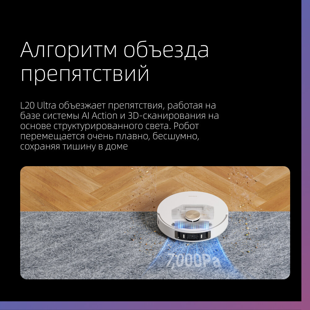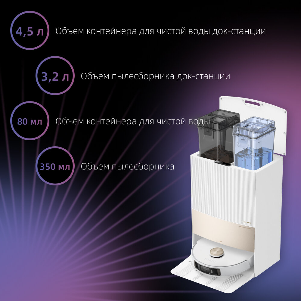 Особенности Док-станция с автообслуживанием и самоочисткой, Мощность всасывания — 7000 Па, MopExtend™ − технология мытья пола вдоль стен с выдвижением швабры, Дополнительный комплект аксессуаров, Полное самообслуживание на автоматической станции самоочистки, Роботизированная база самоочистки и полоскания швабр, Сухая и влажная уборка, Определение высоты ворса ковров и автовыбор режима уборки, LiDAR навигация