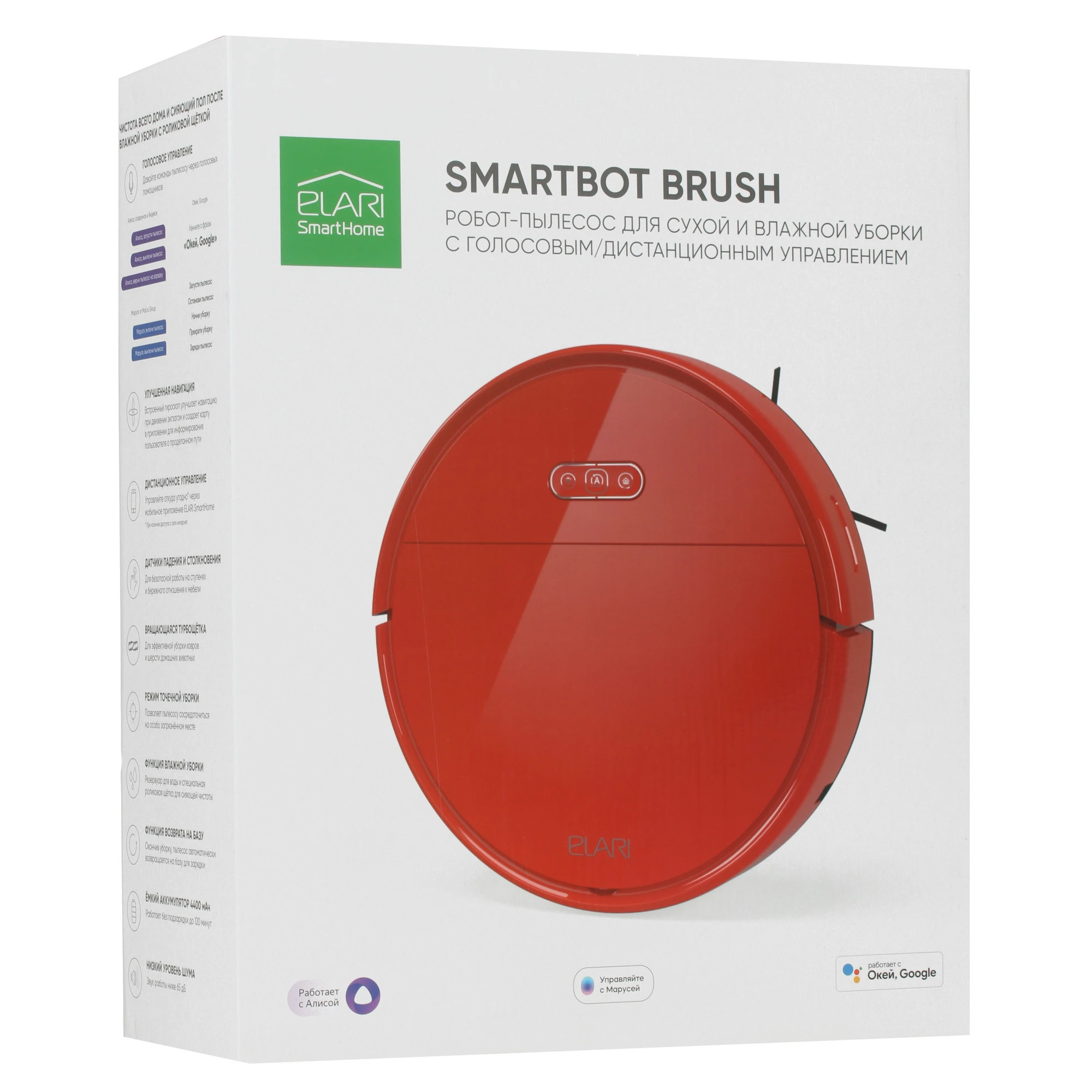 автоматическая уборка, автоматическое возвращение на зарядную станцию, режим «уборка вдоль стены», ещё
