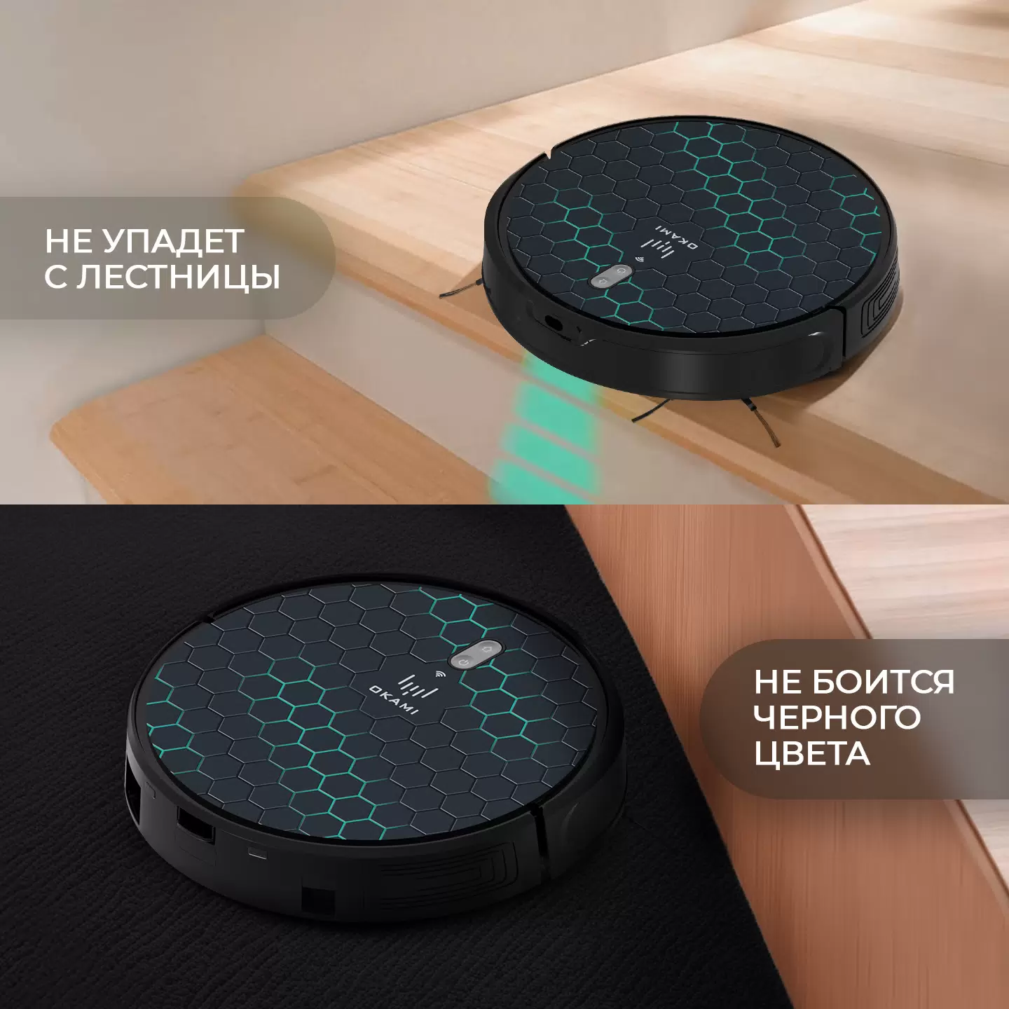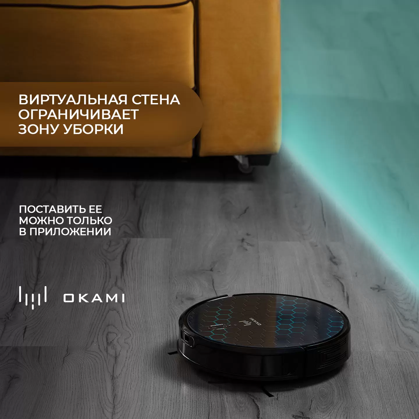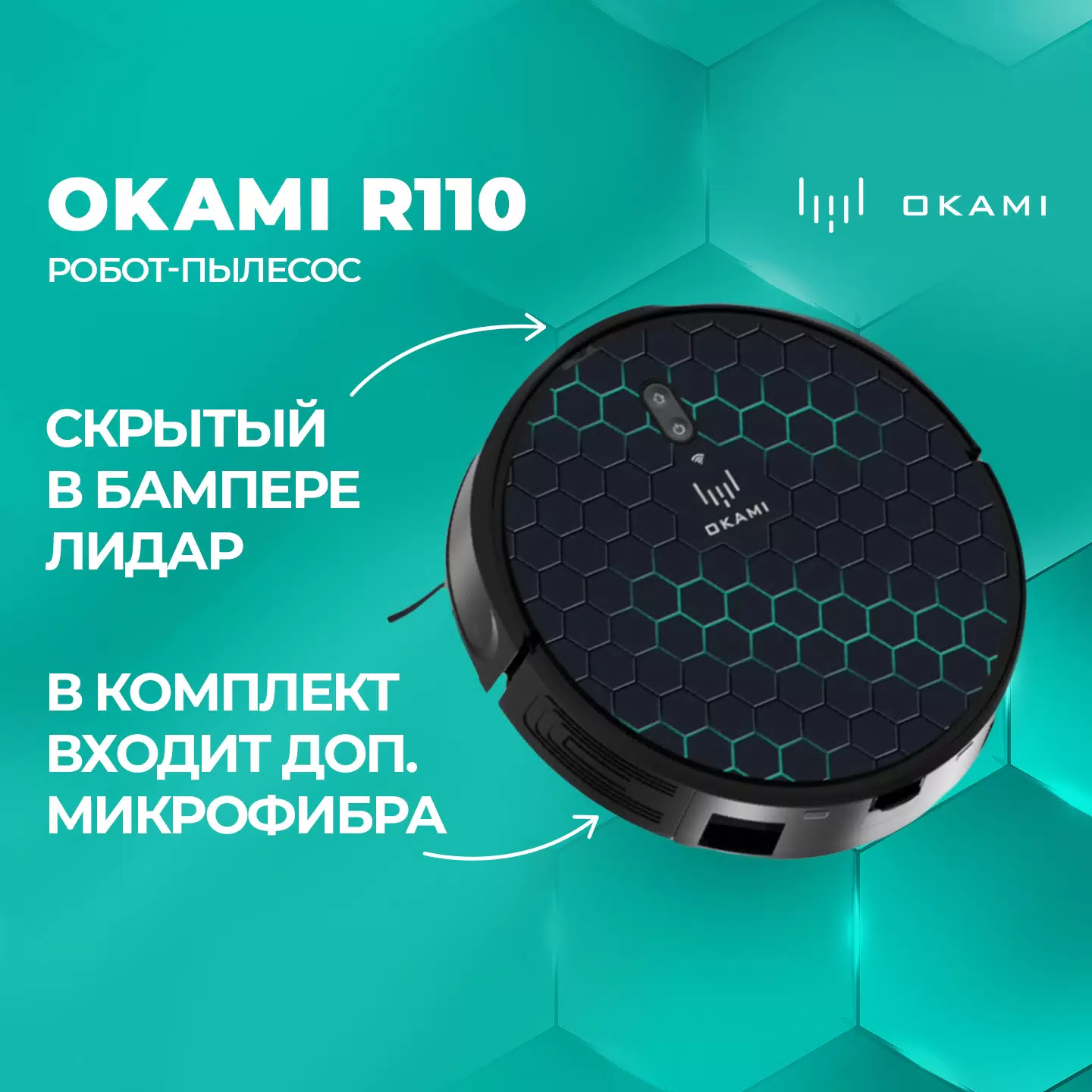 Робот-пылесос Okami R110 Пульт дистанционного управления Адаптер для зарядного устройства Зарядная станция Комбинированный контейнер для пыли и воды Воздушный фильтр HEPA-11 + губчатый: 2 шт Боковые щетки: 4 шт Кисточка для чистки контейнера Тряпочки для влажной уборки: 2 шт Инструкция на русском языке и гарантийный талон