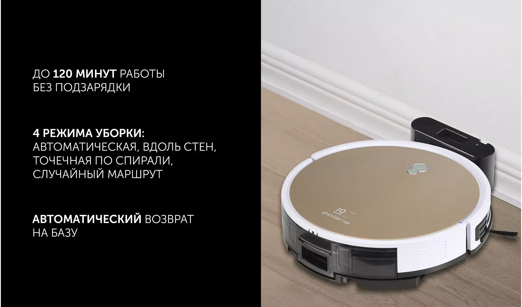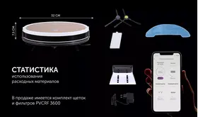 Робот-пылесос Polaris PVCR 0726W – модель, которая выполнена в компактных размерах (35x30x7,5 см) с весом 3,3 кг, что позволяет ей проникать в труднодоступные места. Он справляется со всеми задачами уборки: сбор пыли, шерсти, прочих частиц мусора. Устройство оснащено аккумулятором емкостью 2600 мАч, который обеспечивает непрерывную работу на протяжении 3,5 часов.
