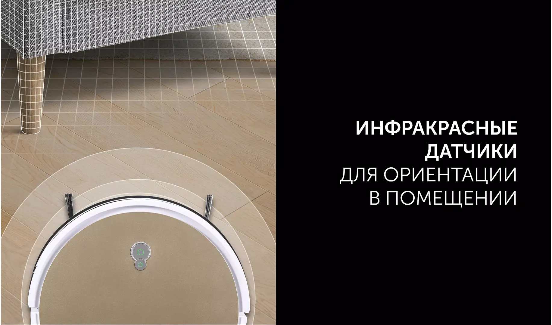 -наличие инфракрасных датчиков, которые отвечают за ориентацию техники в пространстве, предотвращая ее наезд на различные препятствия, а также датчиков антипадения;